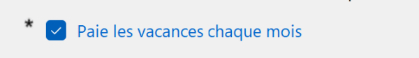 - la liste déroulante permet de choisir le nombre de périodes de salaires dans l’année : 12 mois pour un paiement mensuel des salaires (avec gratification ou 13e salaire optionnels en décembre), 13 mois pour séparer le 13ème salaire sur une feuille de paie indépendante, 15 jours pour un versement bimensuel, 10 jours pour 3 salaires par mois, ou 1 semaine si les salaires sont versés tous les 7 jours;