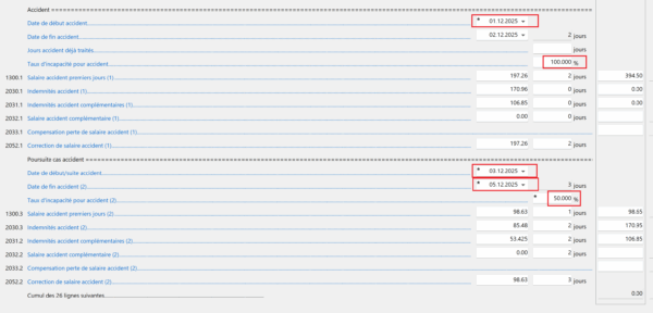 en regard d’un montant signifie que ce salaire a été comptabilisé.