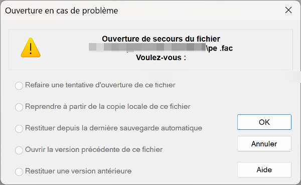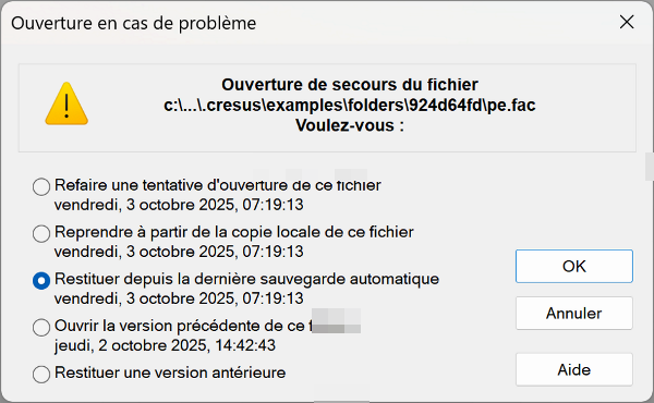 Si votre fichier Crésus ne s’ouvre plus et lance automatiquement la fonction SOS (dialogue Ouverture en cas de problème), deux situations sont possibles :